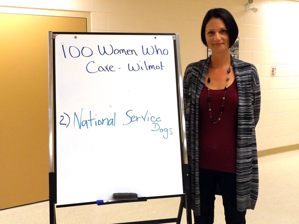 The inaugural meeting of 100 Women who Care Wilmot saw over 70 members coming out to the Wilmot Recreation Centre. Spirits were high as we presented the 3 speakers for the evening: the Wilmot Family Resource Centre, The Community Players and the National Service Dogs. To the delight of the enthusiastic crowd, the National Service Dogs and their program for children with Autism was selected as the first recipient of our donation of over $9000. What a way to begin a fantastic tradition!